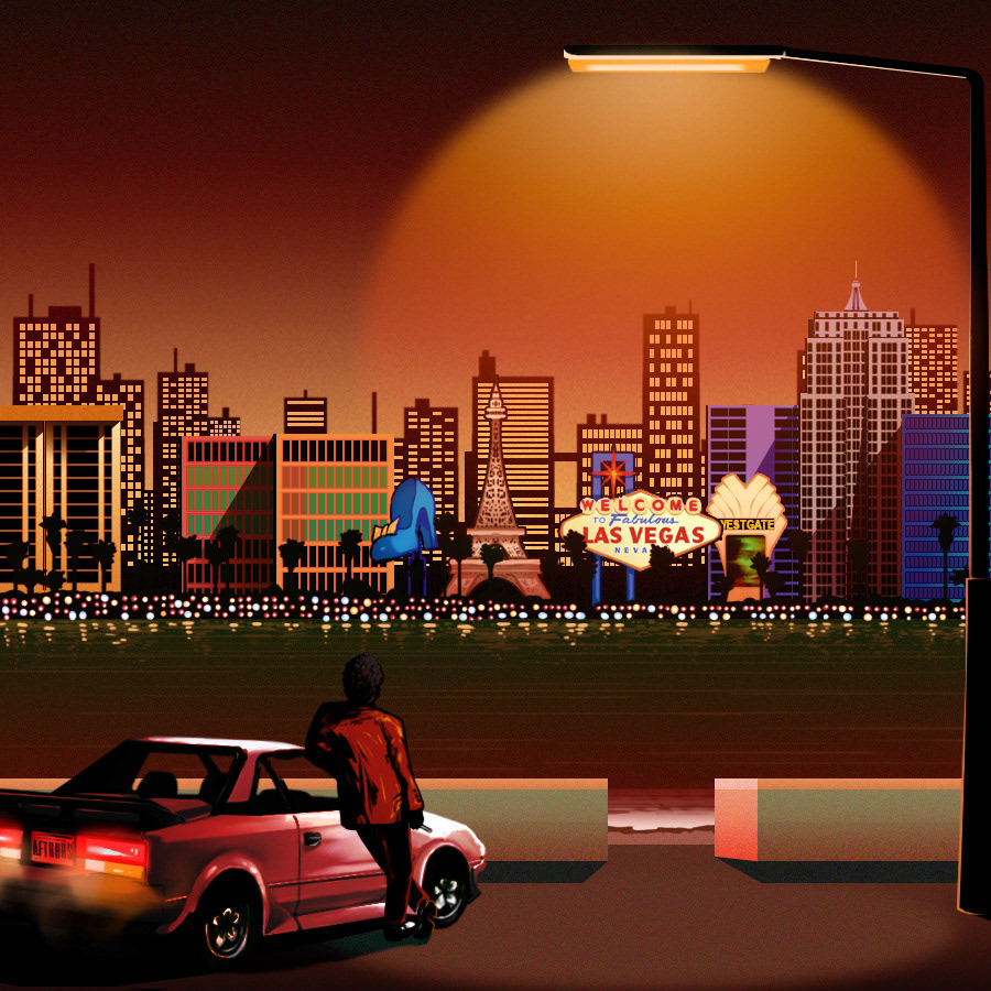 A personal illustration of The Weeknd from his album, After Hours. I came up with this idea of The Weeknd's character gazing and smoking across the way from the Las Vegas strip, or just chilling before he goes and does a lot of regrettable stuff. Like the calm before the storm. During the animation, he's seen driving and crying, almost like he regrets what has happened and what he's choosing to do with his time in Las Vegas.