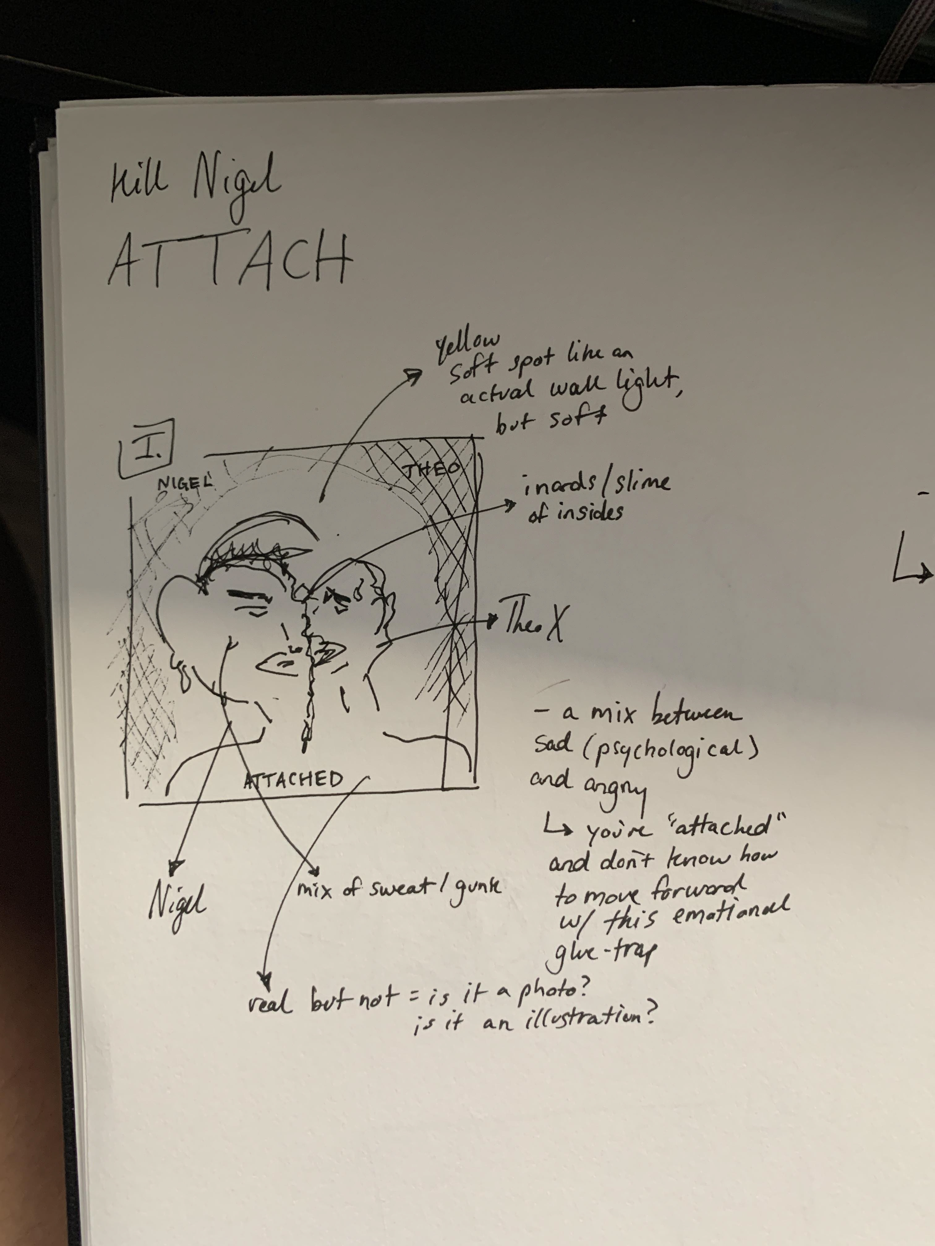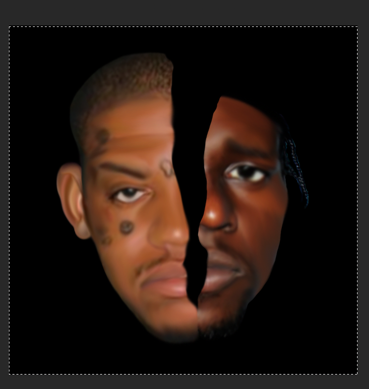 Cover art for Kill Nigel and Theophilus London, for Kill Nigel's single, "Attached." I wanted to mesh both artists' faces together to symbolize they're in the same boat & emotional state despite their perceptions of reality. I felt that it was laced with attitudes of both despondency and frustration, so I chose colors and facial expressions that reflect the underlying tones. The point was to make it immediately apparent the emotional journey listeners can expect to experience, enhancing the their connection to the artists' collaborative work.