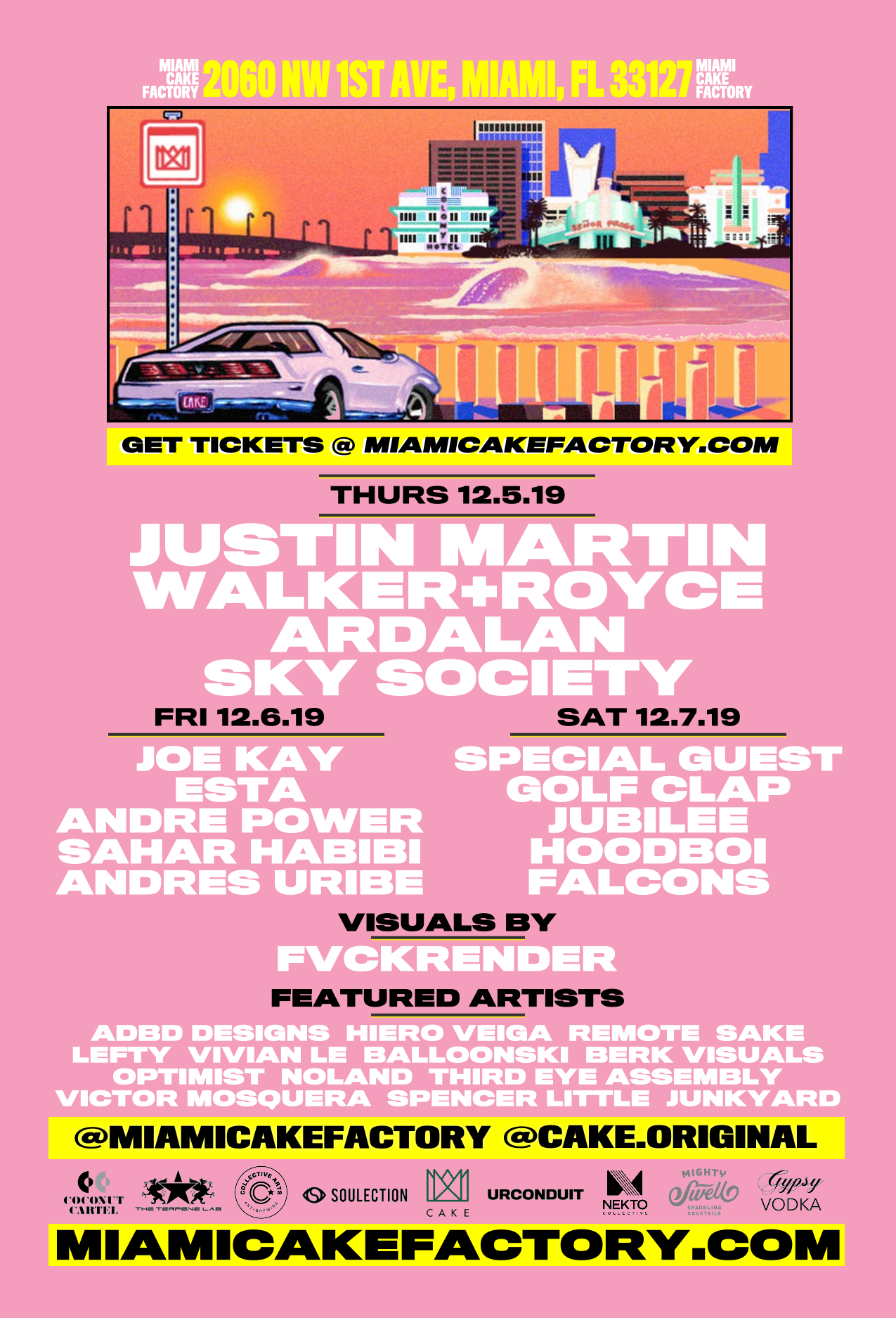 Art director and senior illustrator for The Cake Gallery's Art Basel, 2019. I developed the visual identity for their premiere, crafting a collection of deliverables including animated visuals, hand-drawn illustrations, stickers, physical posters, and social media assets. I designed the aesthetic to blend vaporwave and city-pop themes, referencing artists such as Guy Billout and Hiroshi Nagai, complementing Miami's diverse culture and colorful architecture. This approach effectively captured the essence of The Cake Gallery's vision for their Art Basel debut.