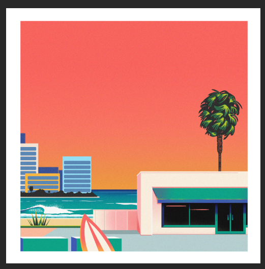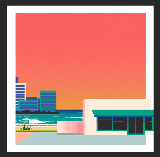 Illustrated cover art and animation for Neek Shavon. Visually, Neek had been inspired by lo-fi music and the beach. As a Miami based artist, they wanted to pay an homage to their place of residence. As a Floridian myself, I knew exactly the theme they were going for. Provided the sunsets, culture and nature, we moved forward with a style reminiscent of Guy Billout and Hiroshi Nagai's work.