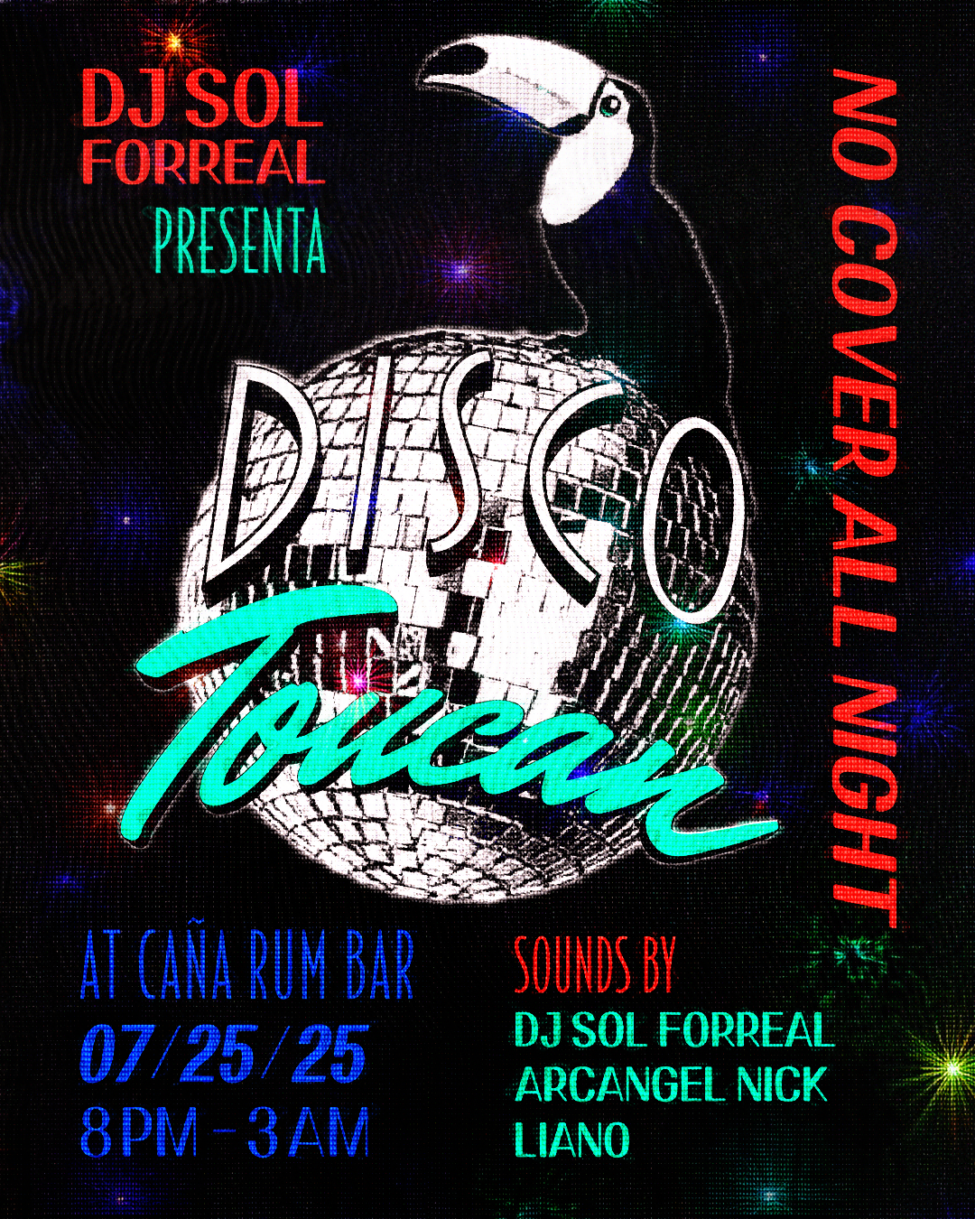 Disco Toucan's DJ Sol Forreal’s new brand, a place to share all his sets and build a fresh, fun vibe. The look's inspired by classic references like Scarface’s “The World Is Yours” and the notorious "Flamingo Hotel" in Vegas, with bold, vintage lettering and a tropical twist. The toucan logo's a personal nod to DJ Sol’s dad, who made papier-mâché macaw birds, so the brand feels authentic and connected to family. Disco Toucan's about bringing together good music, good times, and a sense of community.