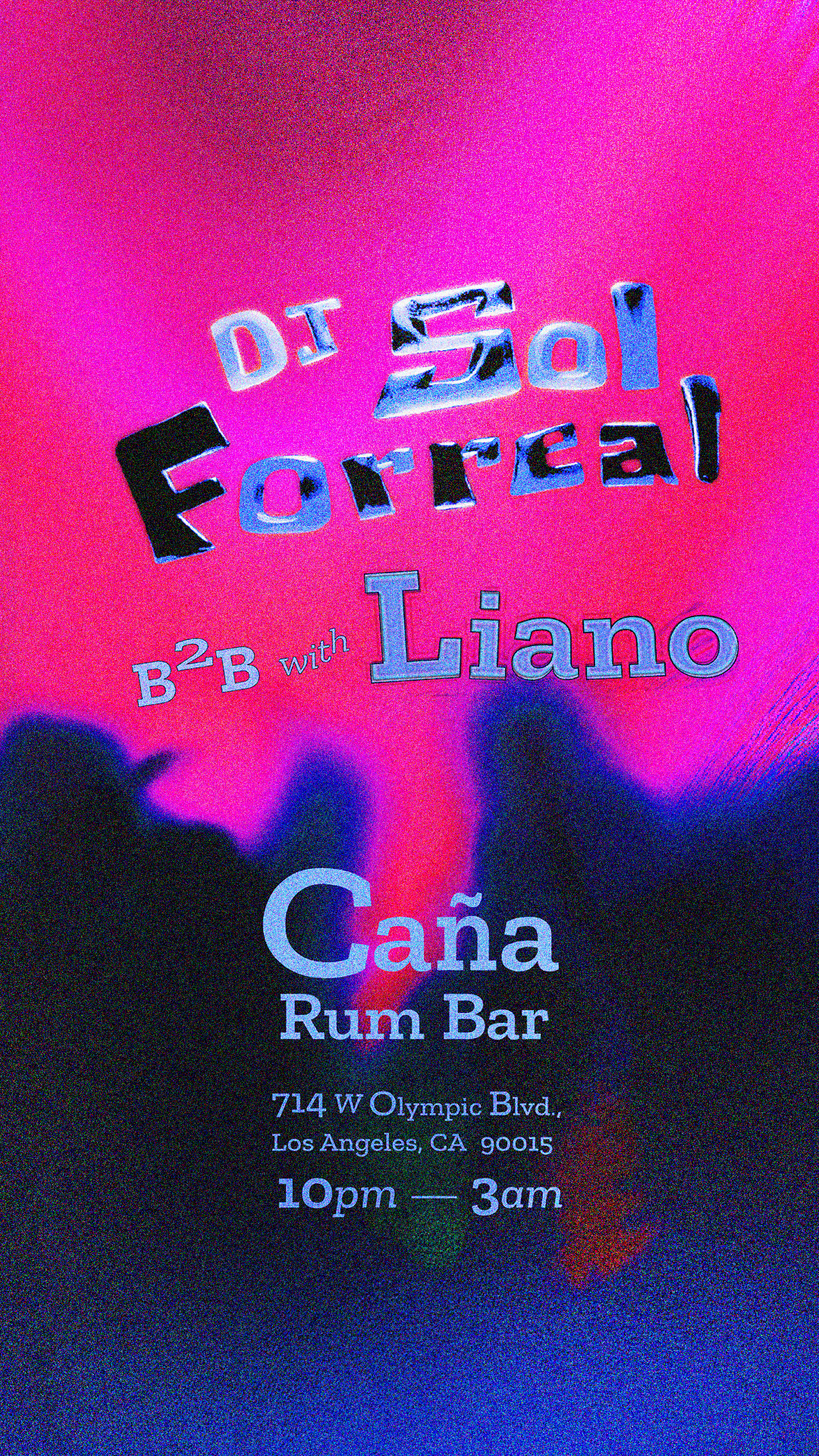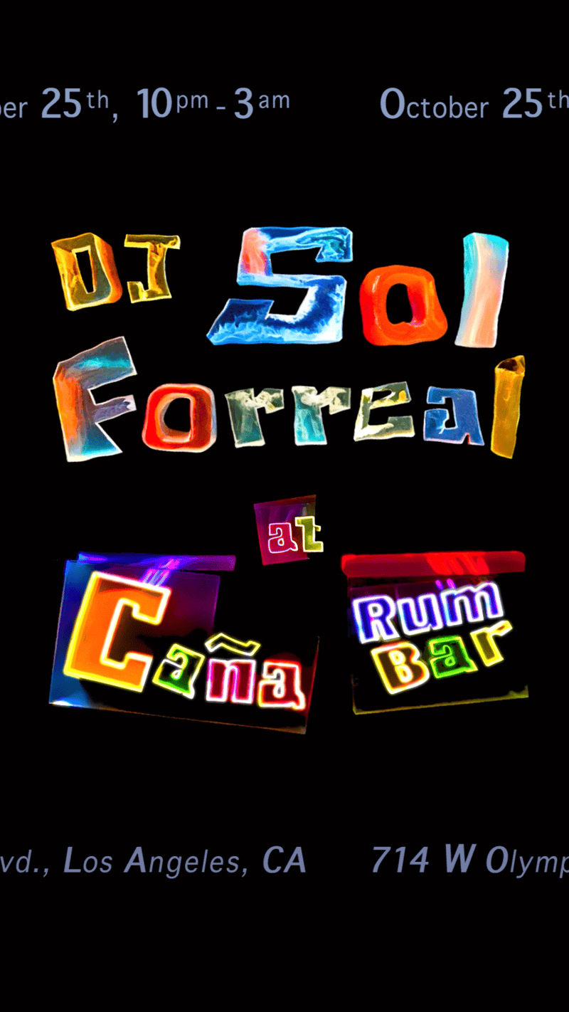 Informed by the demographic insights of LA’s club scene—where promotional materials often prioritize chaotic layouts and illegible typography—my work with DJ Sol Forreal’s branding deliberately subverts these norms. Drawing inspiration from Valerie Vescovi’s rhythmic cubism, I crafted posters and motion graphics that balance kinetic energy with structured hierarchy, using gelatin-like textures and neon silhouettes to evoke movement. Through iterative experimentation with AI tools, we dynamically “remix” these visuals, mirroring Sol’s musical approach while maintaining clarity in event details.