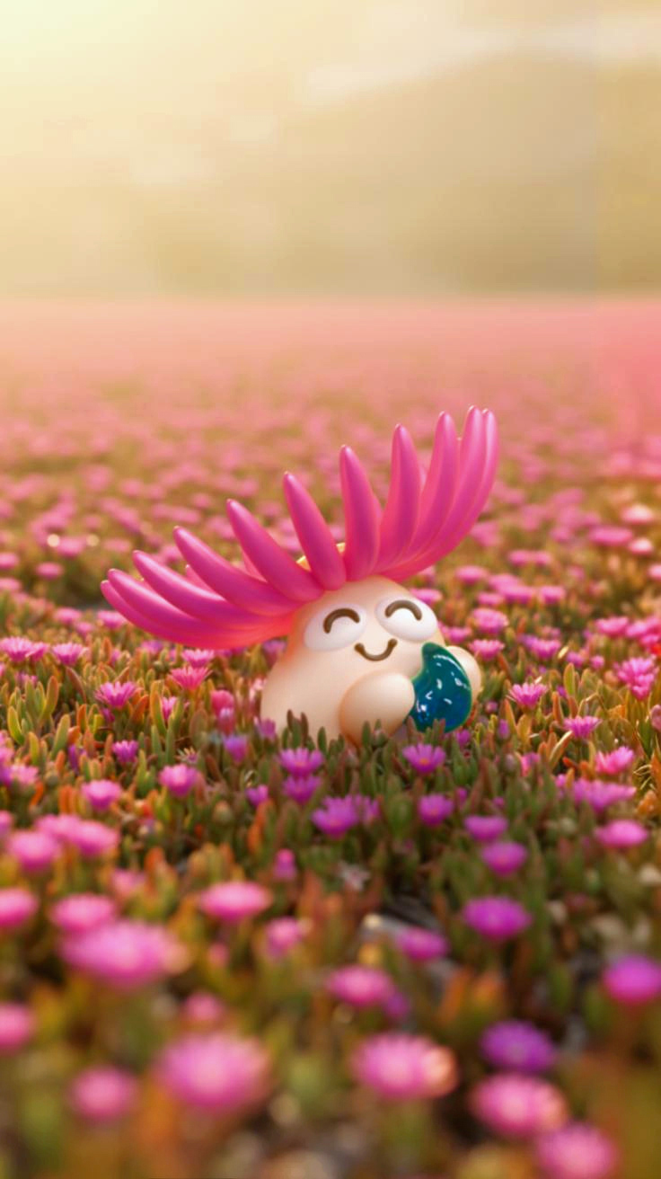 A playful 3D ice plant character sculpted in my signature cartoon style and animated with a stop motion feel, created as a personal collaboration with an online friend. Inspired by the hardy ice plants along California cliffs that help protect drivers, this piece is a small reminder that gentle things can still be strong.