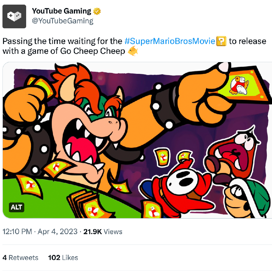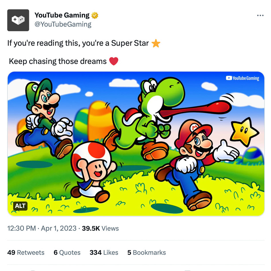 A YouTube Gaming prompt illustrated for the promotion of the Mario movie.