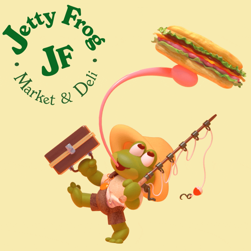 3D illustration, product design, and logo redesign for The Jetty Frog, a market and deli based in Elkton, MD.