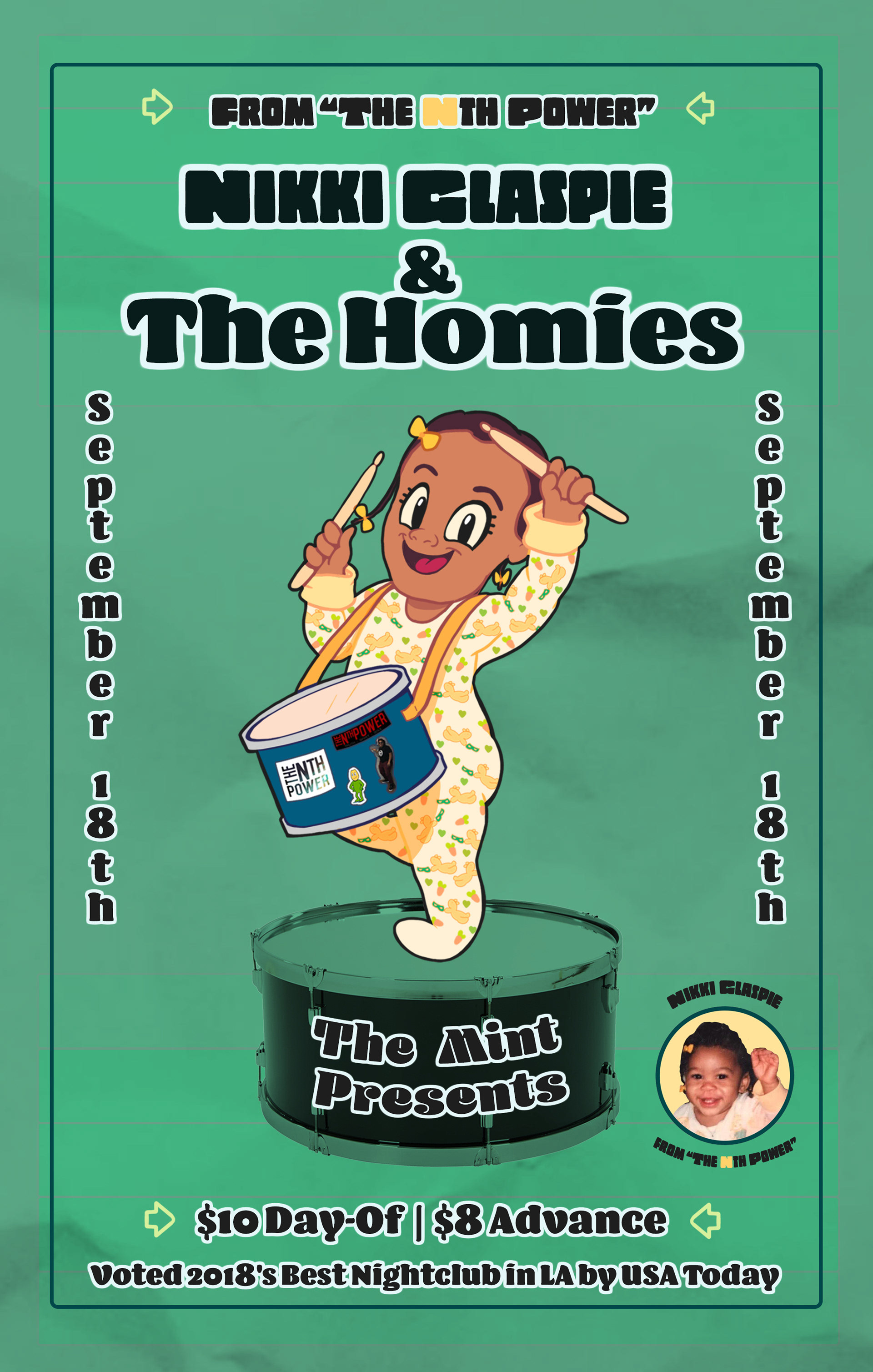 Graphic design statics made for The Mint Nightclub. On September 18th, 2018, Nikki Glaspie & The Homies were performing. For this advertisement, I spoke with their marketing team on creating a poster & advertisements. Provided the references, I drew Nikki when she was a baby as a cartoon, and from there placed the information shared with me in the ads.