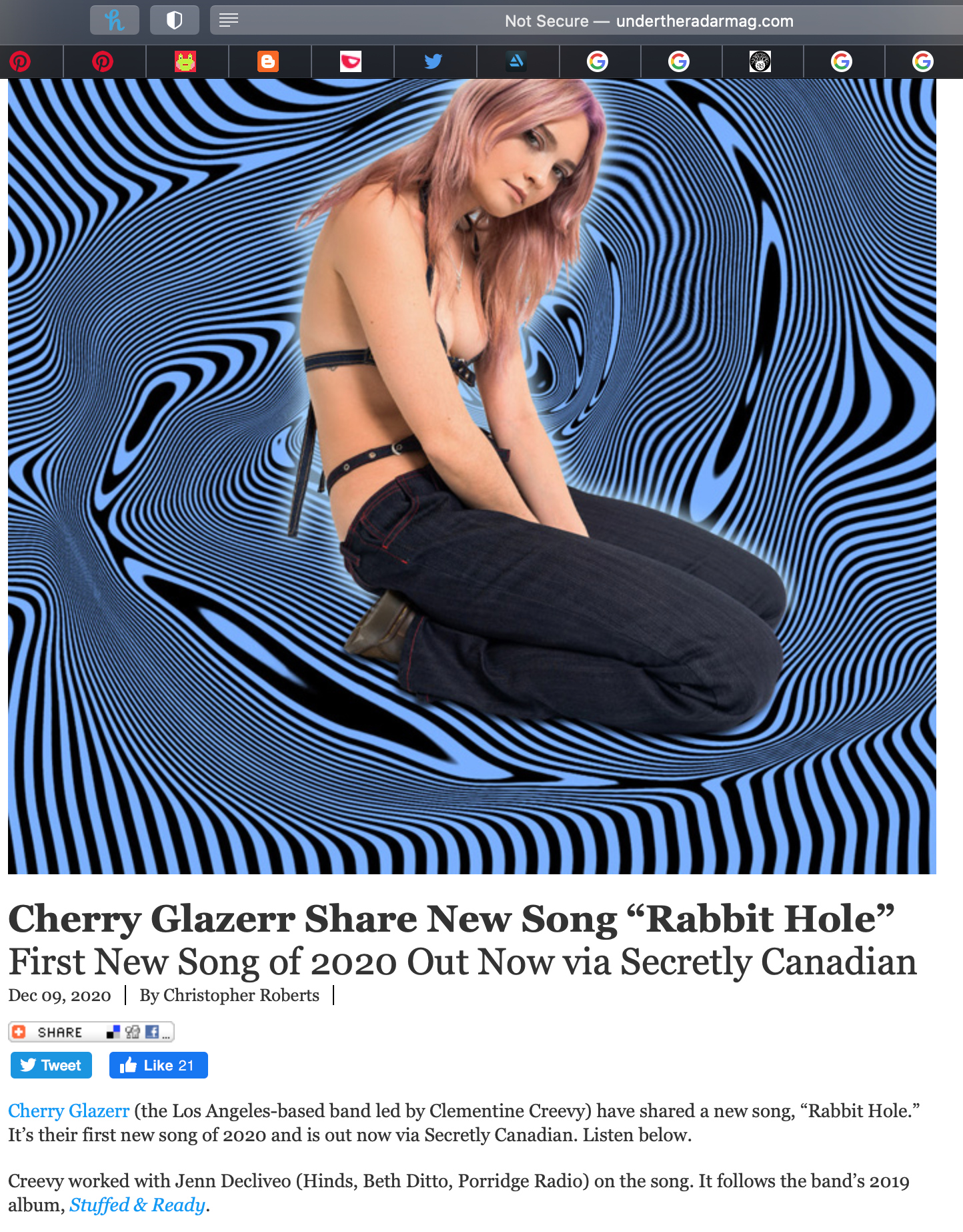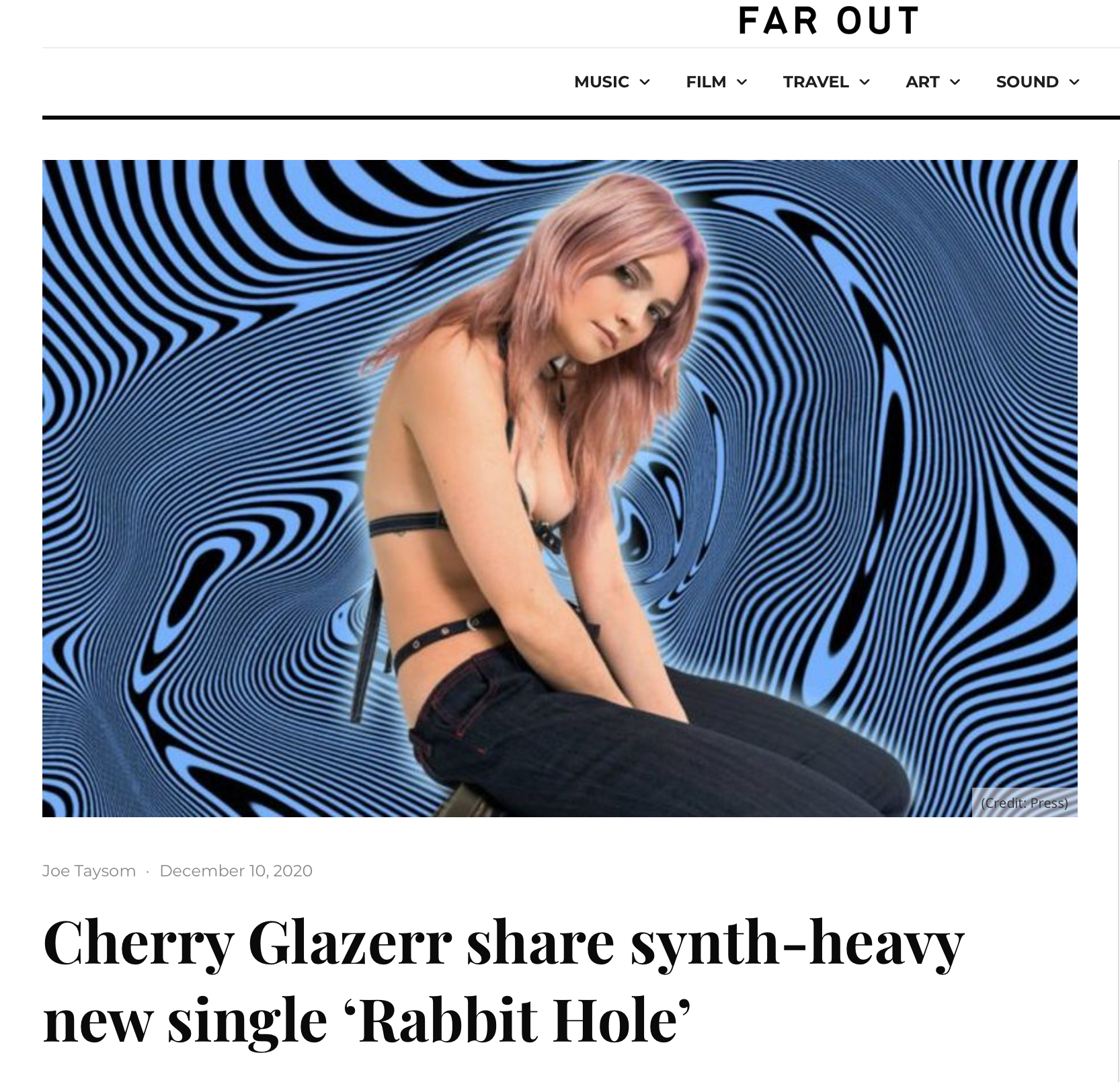 Cover artwork for Cherry Glazerr's single, titled, "Rabbit Hole". She was looking for a design that was psychedelic and clean. She was thinking that a glow around her in the final design would make for a nice touch. Art director and photographer, Walter Brady, had worked with me in choosing the final design and color palette. We wanted to make something that was mesmerizing but not too painful on the listeners eyes when viewing Cherry's cover art. It was appreciated by her and her management team so much they decided to use it for the marketing of her single's release.