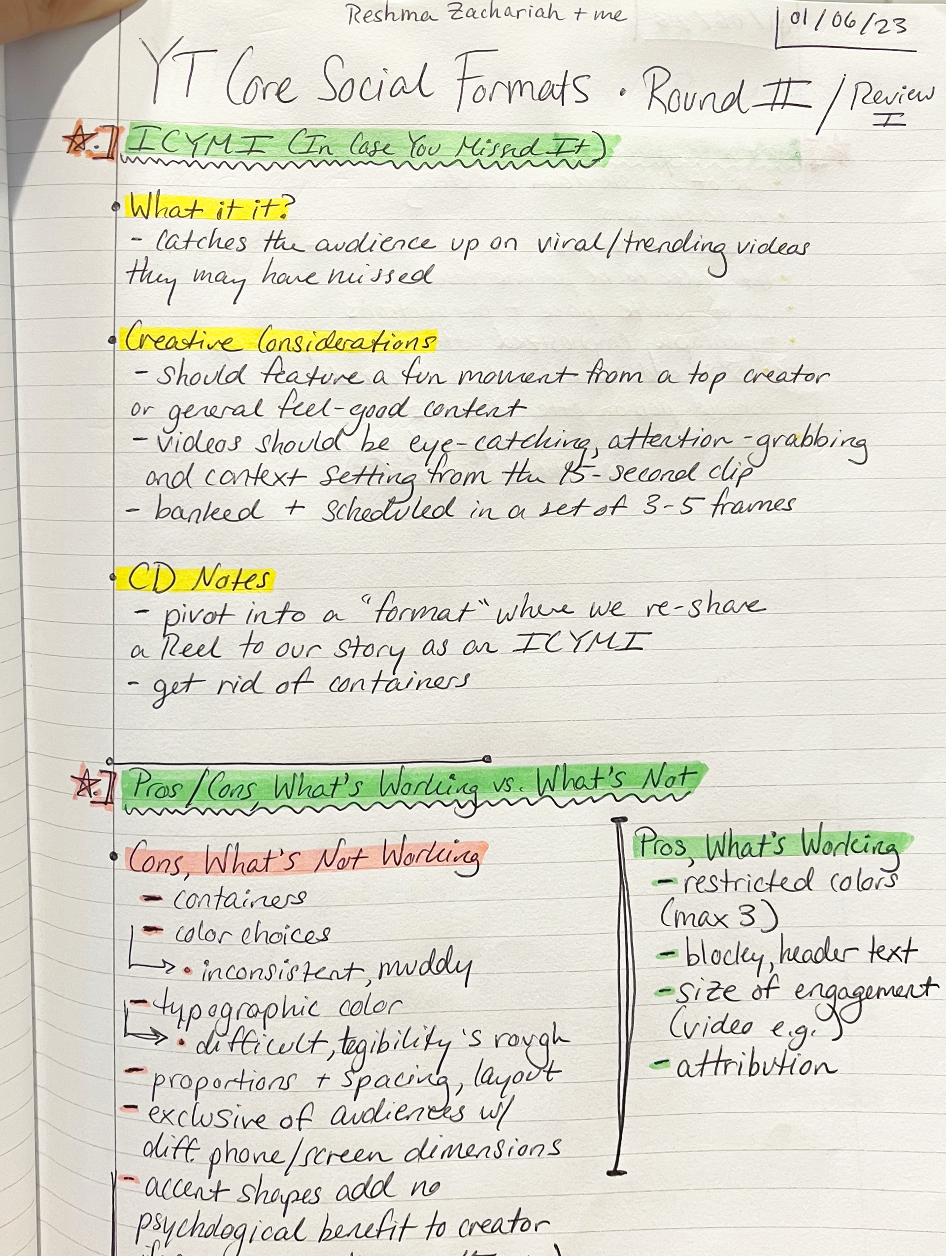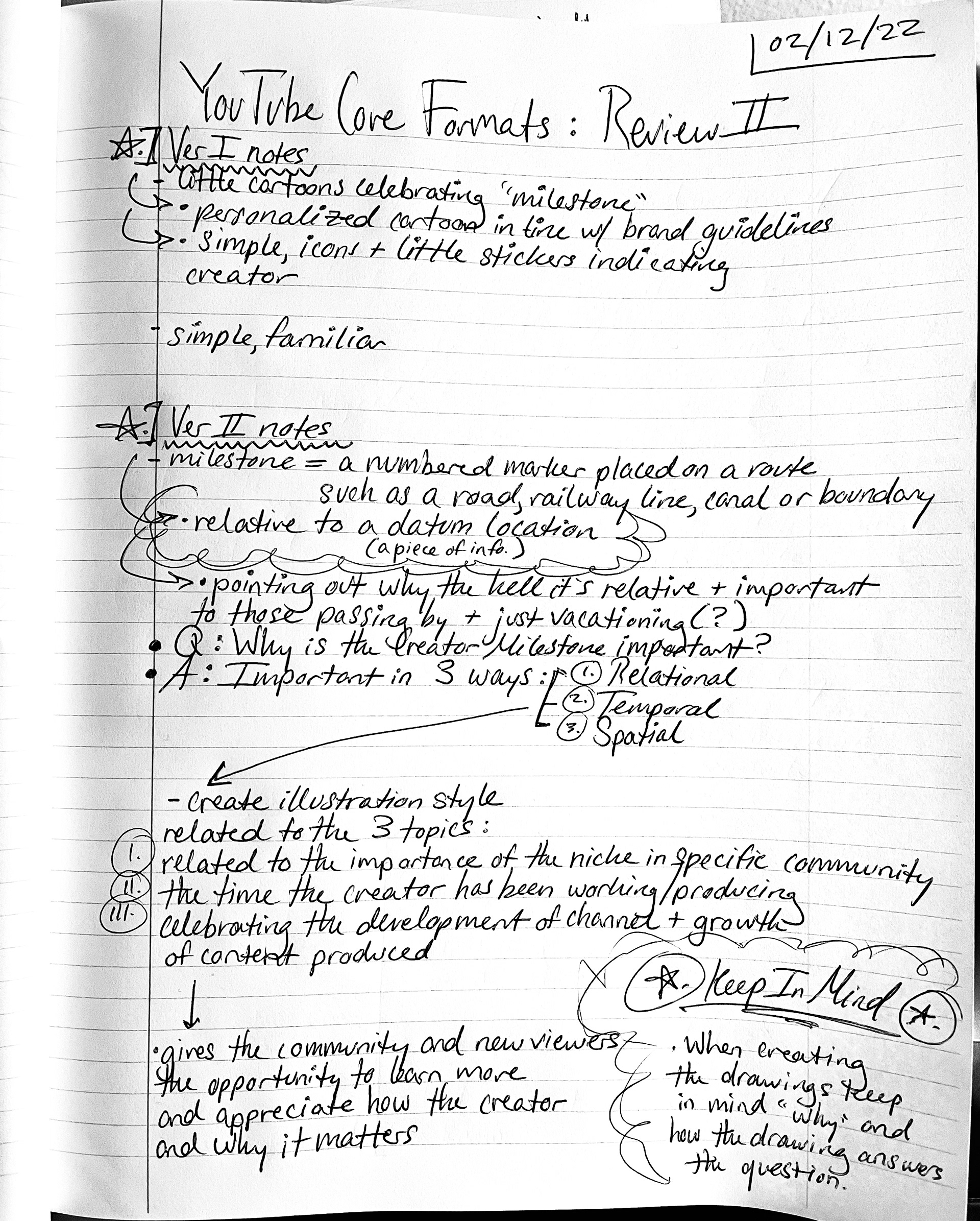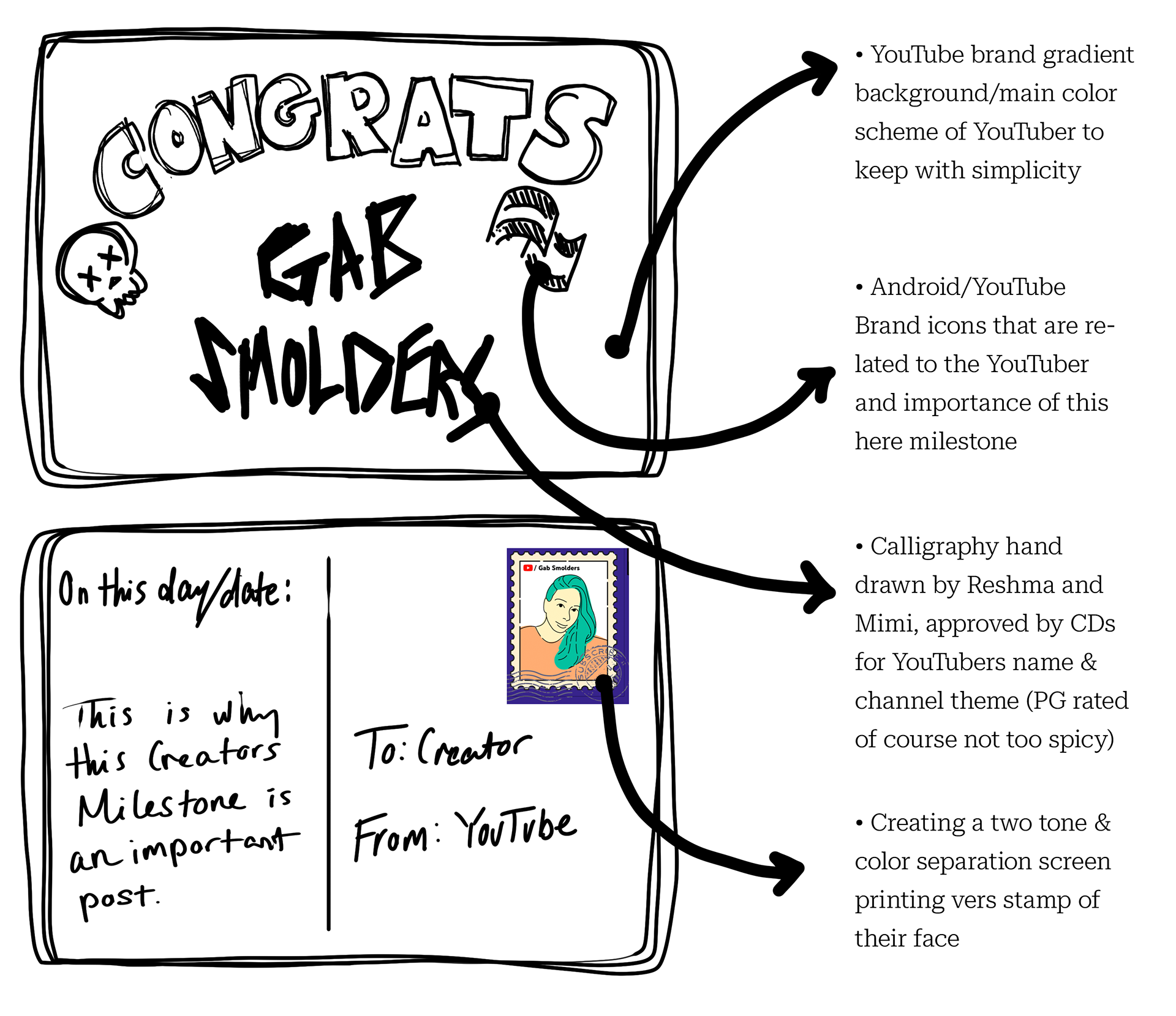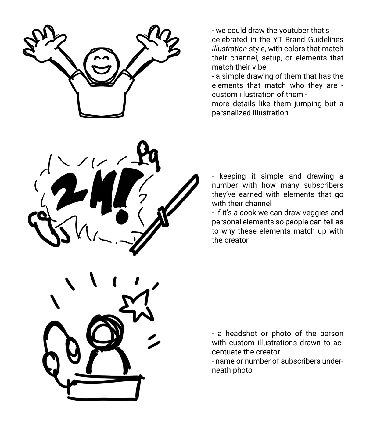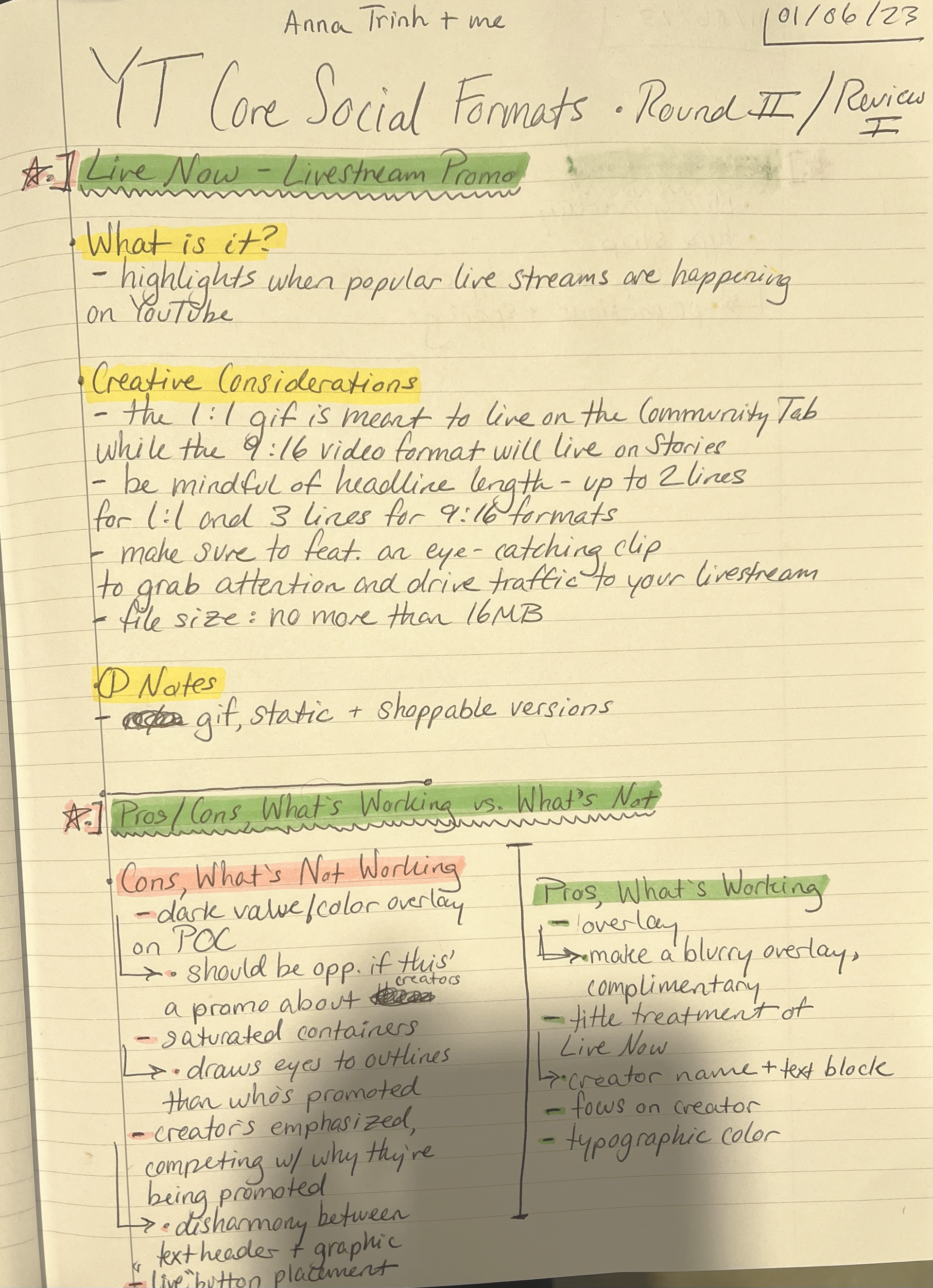 Within a 4 month time period, our team of 9 designers worked on multiple facets of YouTube Core's Social platform. We were split into teams of 2-3, where the grounds for early-stage communication and pre-mortem's took place. Above, you'll see final approval of these designs by YouTube, as these were the specific sections I worked on. From the UX and UI layout & photo edits, to the motion graphics approved by our creative directors (which were later sent for final animation adjustments to our team of 4 motion designers):