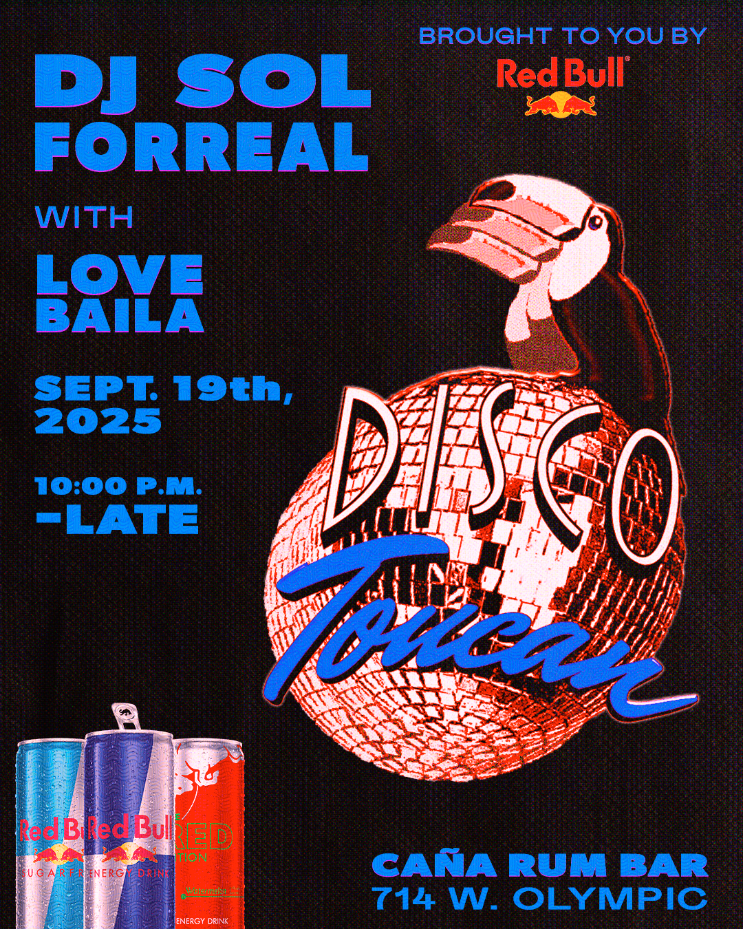 Static posters often get ignored in busy nightlife environments. To solve this for the event at Caña Rum Bar, I created a motion-forward graphic that served two purposes: showcasing the Red Bull sponsorship and retaining viewer attention. The animation provides a dynamic backdrop, keeping the viewer engaged with the movement while they process the text hierarchy.