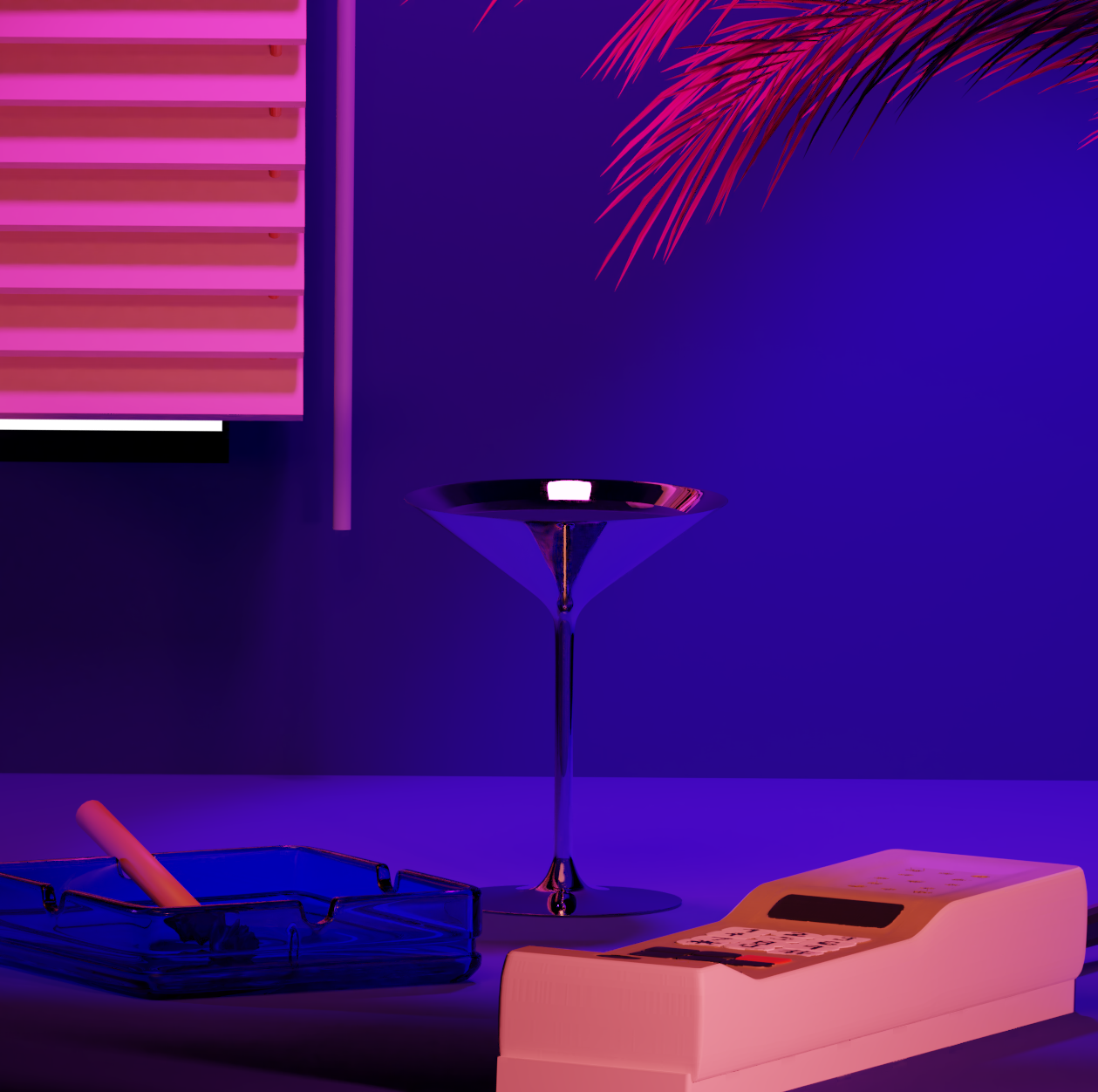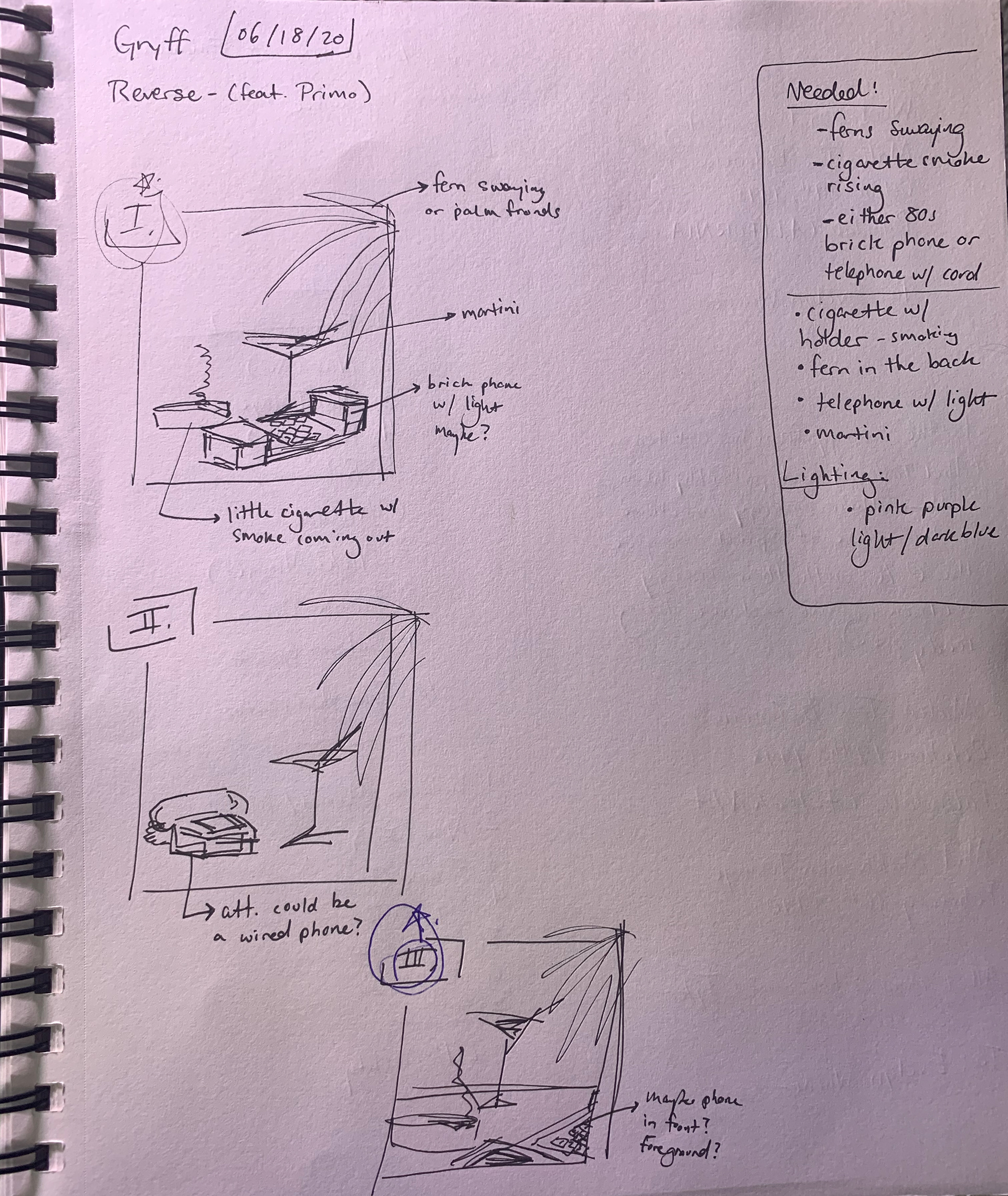 Cover art for .Gryff. Inspired by a 3D Miami-retro picture, he was going for a peaceful scene of some seemingly normal objects with moody lighting. Working with designs he was inspired by, I suggested we try something that was 3D. I drew up some sketches and decided to merge ideas #1 & #3 to create the final design.