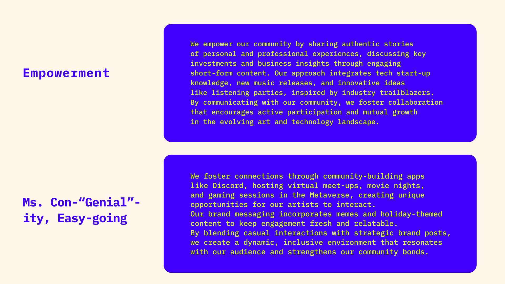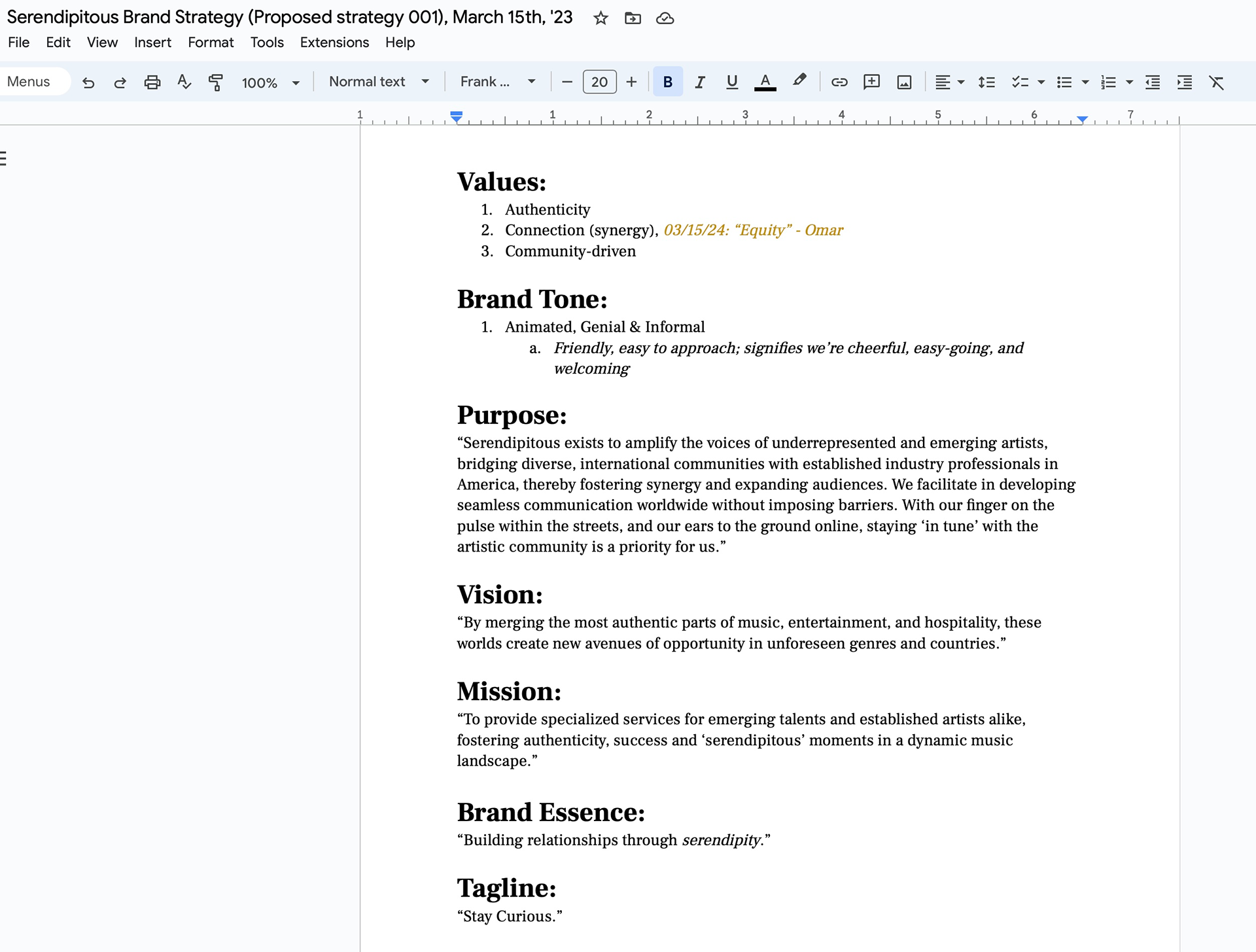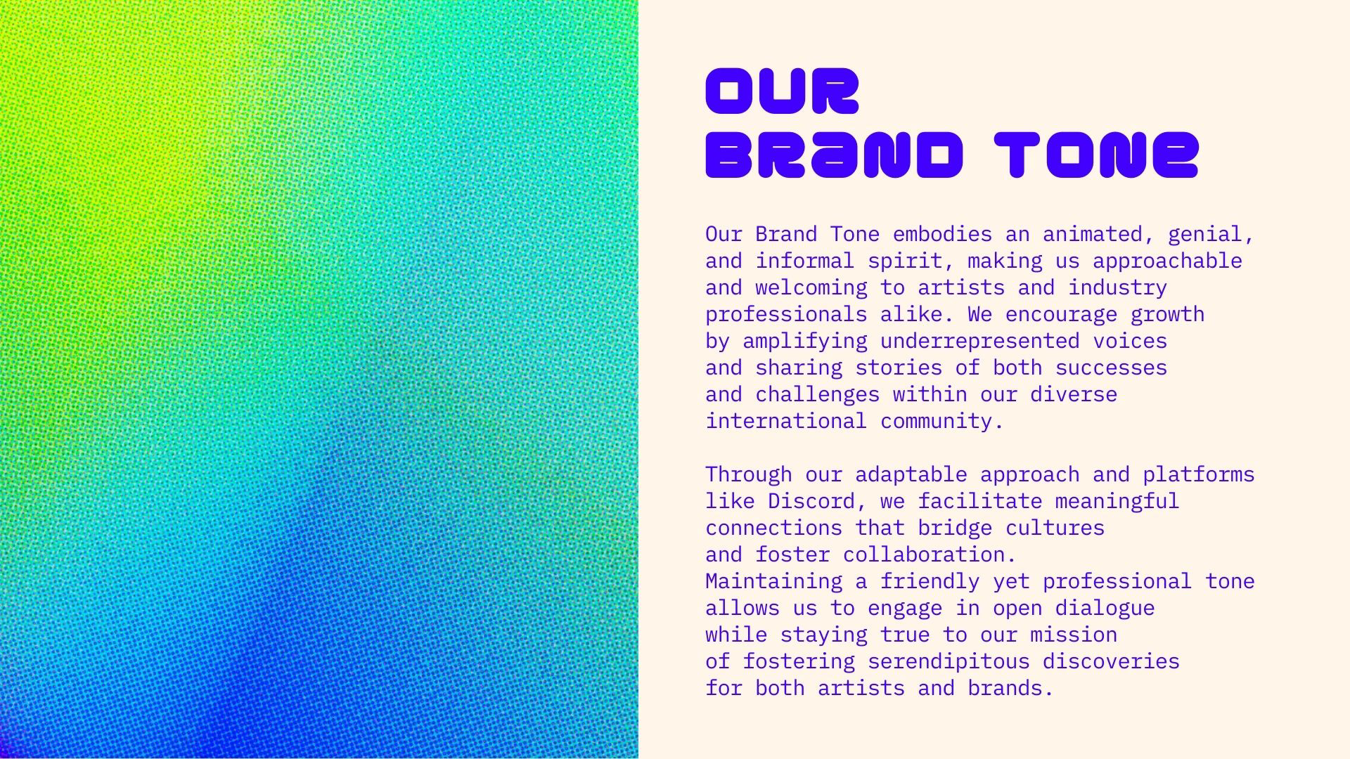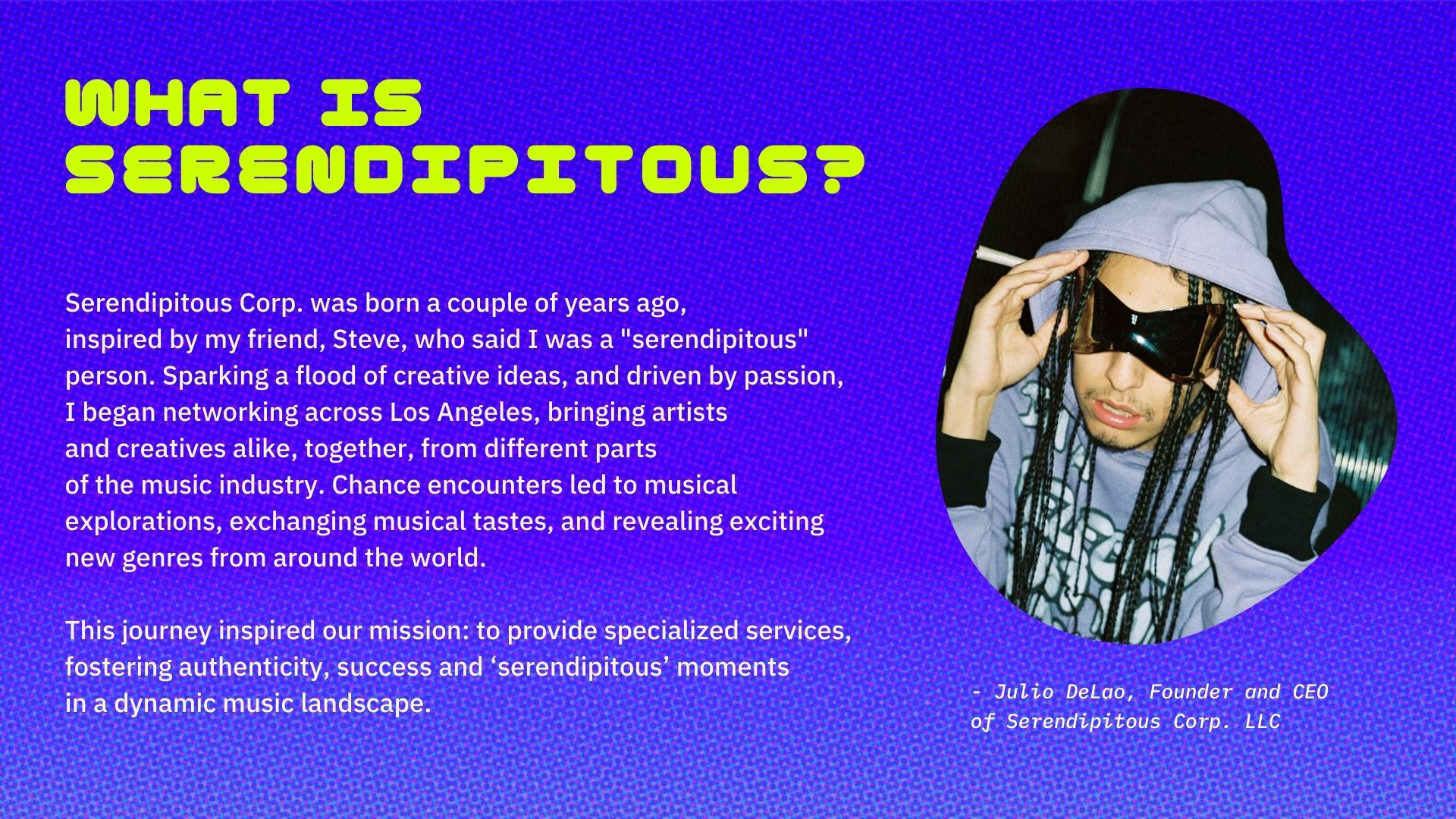 Brand strategy and Visual identity design for Serendipitous Corp., a company showcasing budding talent from all over the globe, akin to a radio station sharing new music. As the Director of Visual Development for the L.L.C., I work closely with the C.E.O. and C.F.O., having developed and consistently manage our branding and visual style guide. Reminiscent of the early 2000s and early 2010s, our visual identity's designed to create a nostalgic yet timeless design for supporters. This reflects the company's mission of connecting audiences with fresh, diverse talent from around the world, all while embodying the serendipitous nature of discovering new artists.