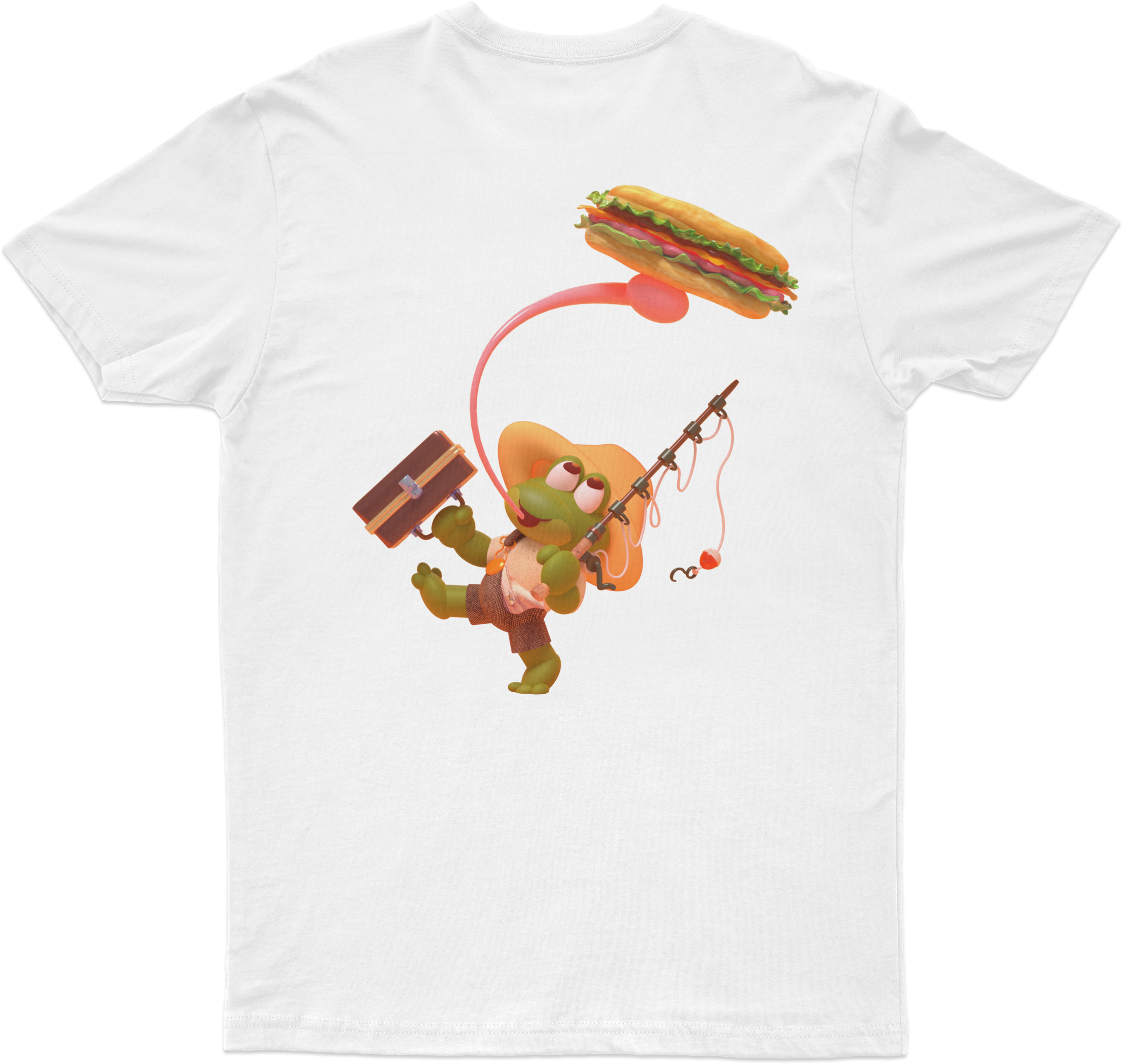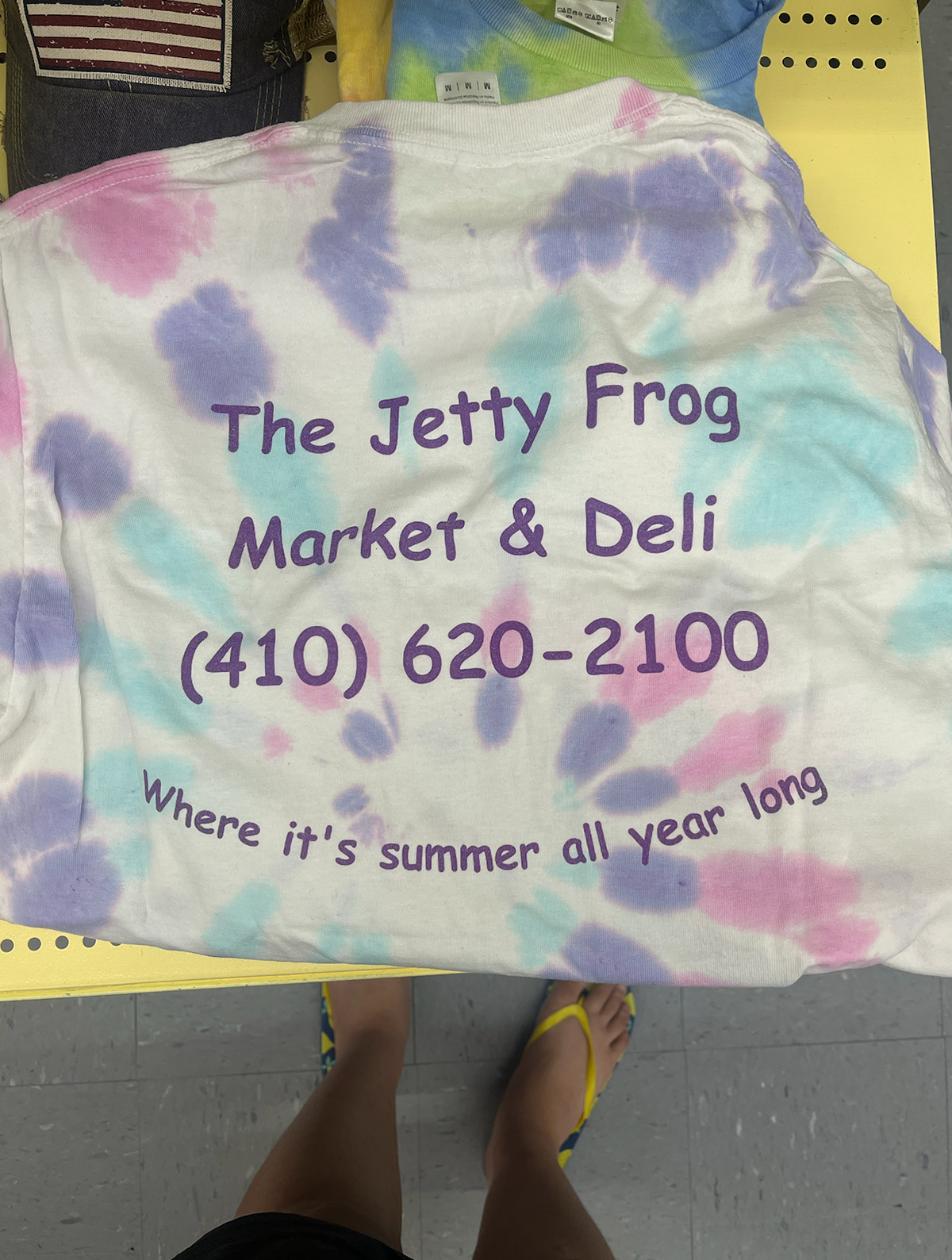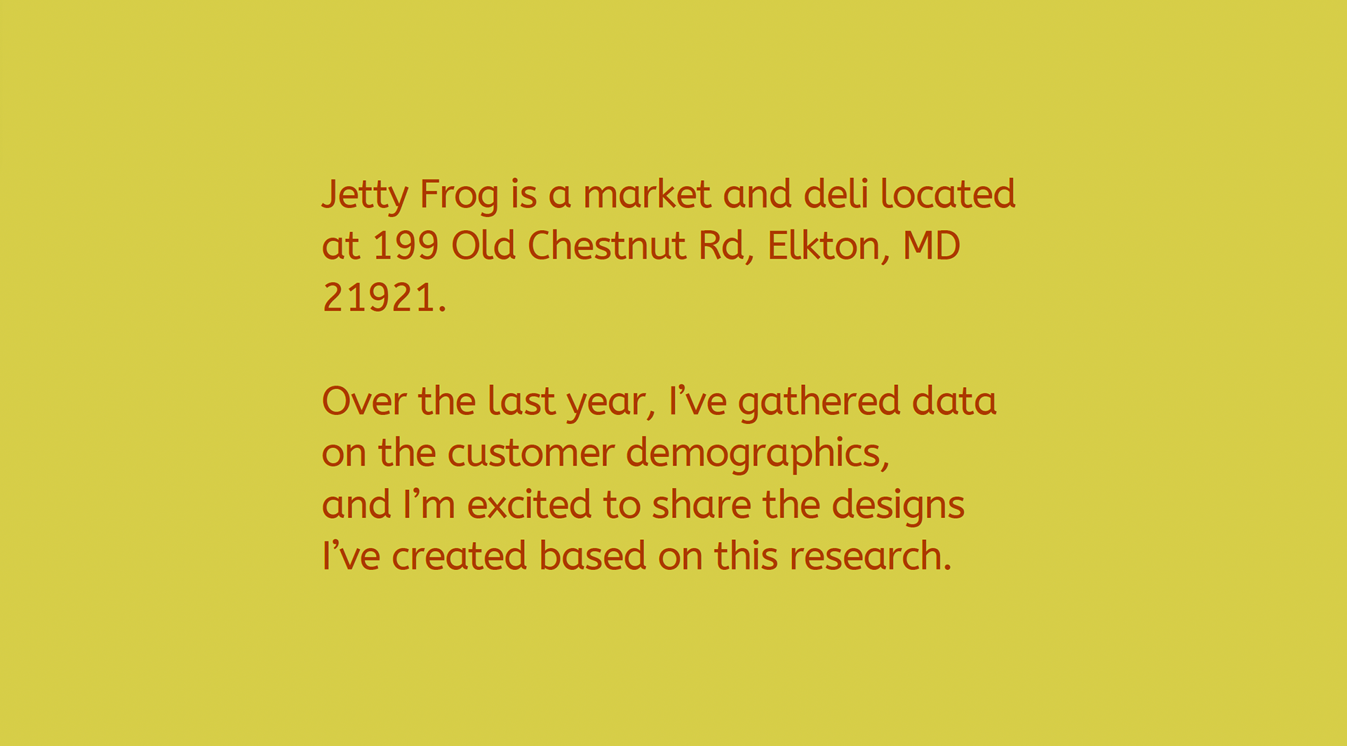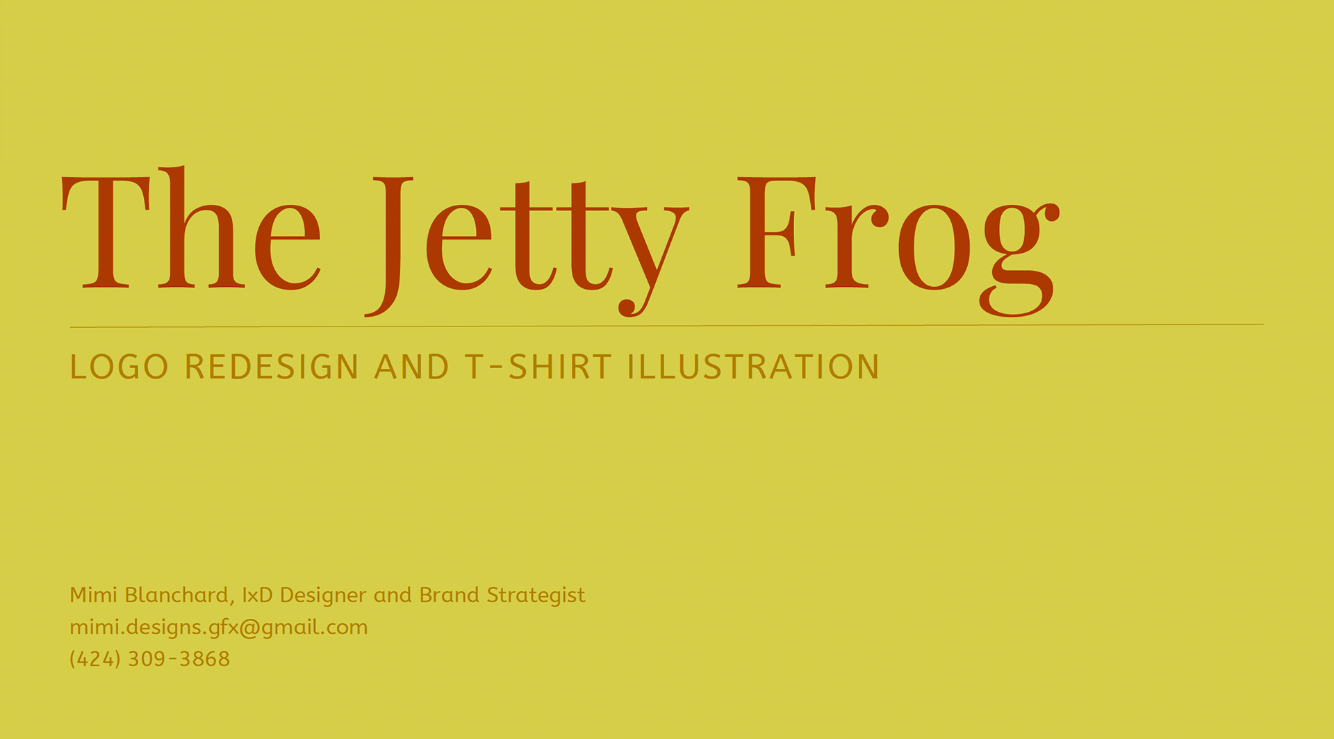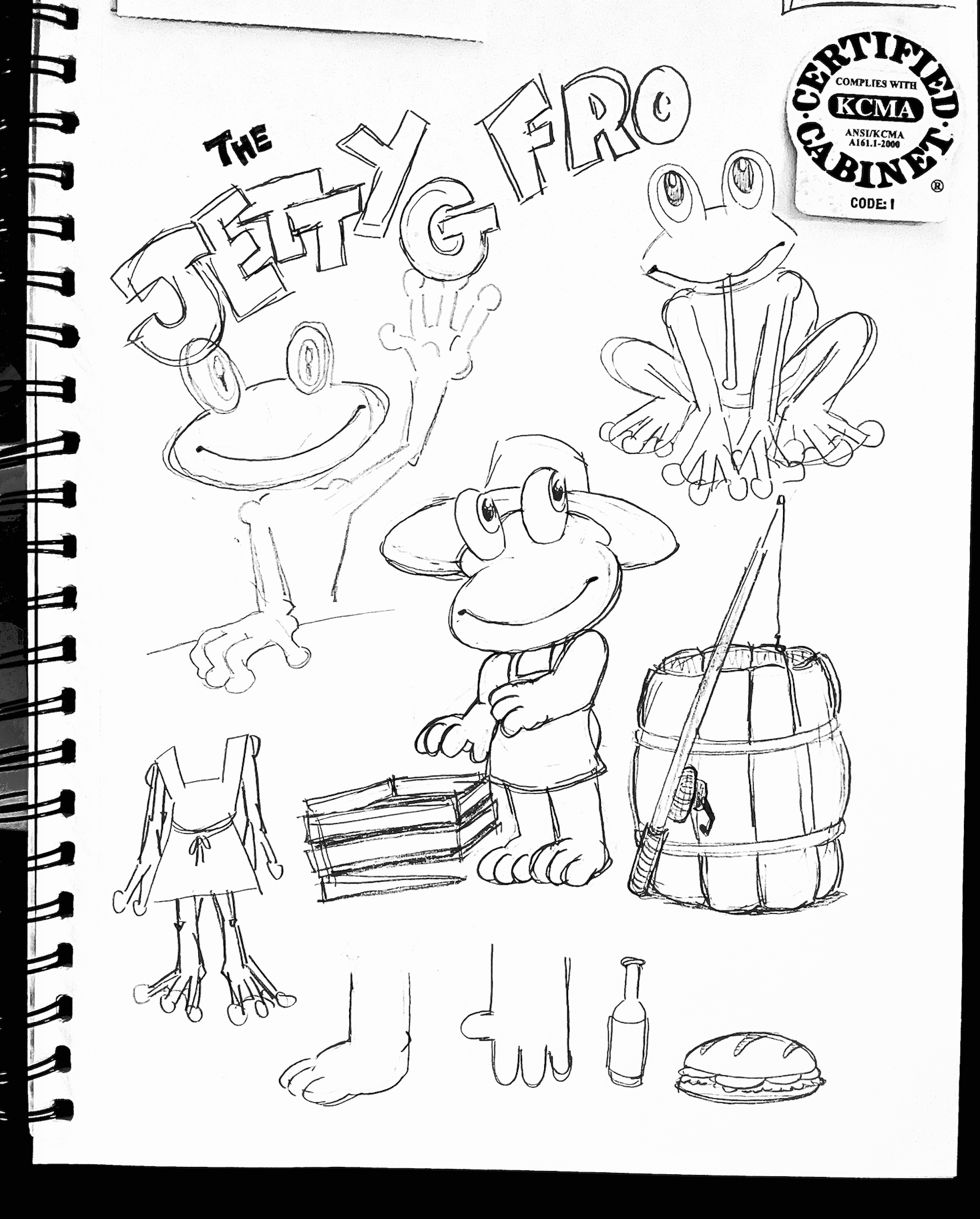 As a huge fan of The Jetty Frog, a market and deli located at 199 Old Chestnut Rd, Elkton, MD 21921, I tried to capture the essence of the establishment. I chose to redesign their t-shirt illustration and logo to better reflect the community spirit. Based on customer demographic research gathered over the last year, the design incorporates playful elements that reflect the deli's fun and friendly vibe, using a bright and engaging color scheme to emphasize freshness and quality. I chose the typeface "New Spirit" to maintain familiarity for their loyal customers. The new character, lovingly named Frankie Frog, design is inspired by the diverse clientele that frequents the market—farmers, crabbers, construction workers, and fishermen—capturing their essence in a fun and relatable way. Over the past year, I've gathered insights on customer demographics, and I'm thrilled to share these designs that resonate with the local community. The positive feedback from business associates in North East and Elkton, MD, as well as my design friends in Los Angeles and Washington, has been overwhelming. This redesign aims to celebrate the values of true grit and down-to-earth cuisine that The Jetty Frog embodies.