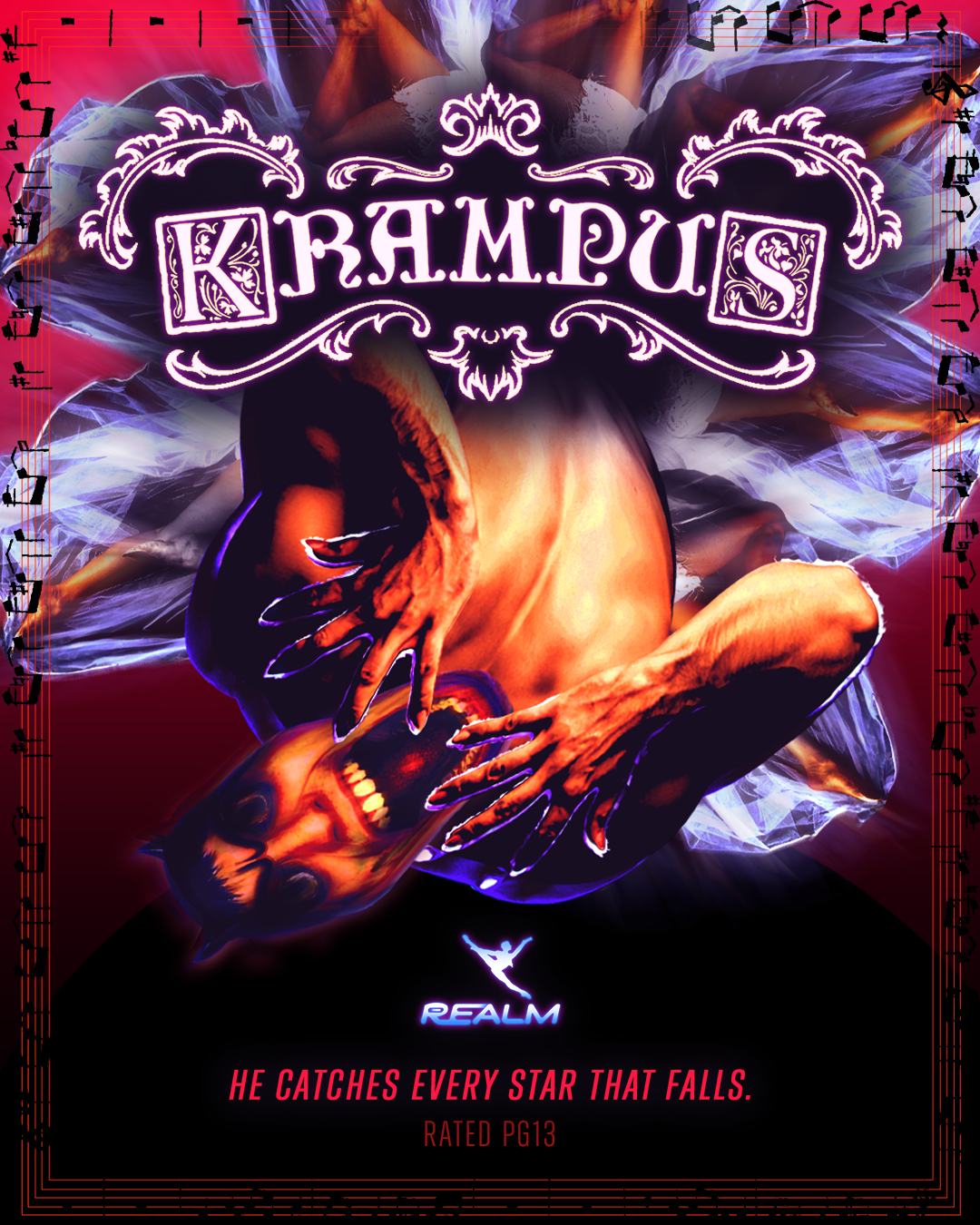 As the flagship event for The Realm Company, KRAMPUS is a new breed of immersive ballet: gritty, cinematic, and raw. In 2025, I partnered directly with composer and producer Taylor Briggs and Artistic Director Chasen Greenwood to shape the commercial art direction and build the entire marketing campaign from the ground up.