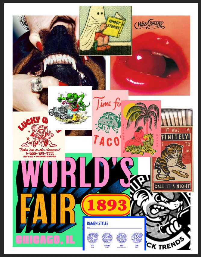 Character designs made for our previous creative studio, Must Die Management. Working with Walter, we were able to create two distinct, yet similar character designs: Ticket Man & Kidd Ticket. He was thinking that for the characters, one could be silly, similar in tone to Looney Tunes, while having traits from the rubber-hose animation art style. The other would be semi-mature, similar to that of World Industries. Provided below is a moodboard to show where my inspiration came from in the development of these characters.