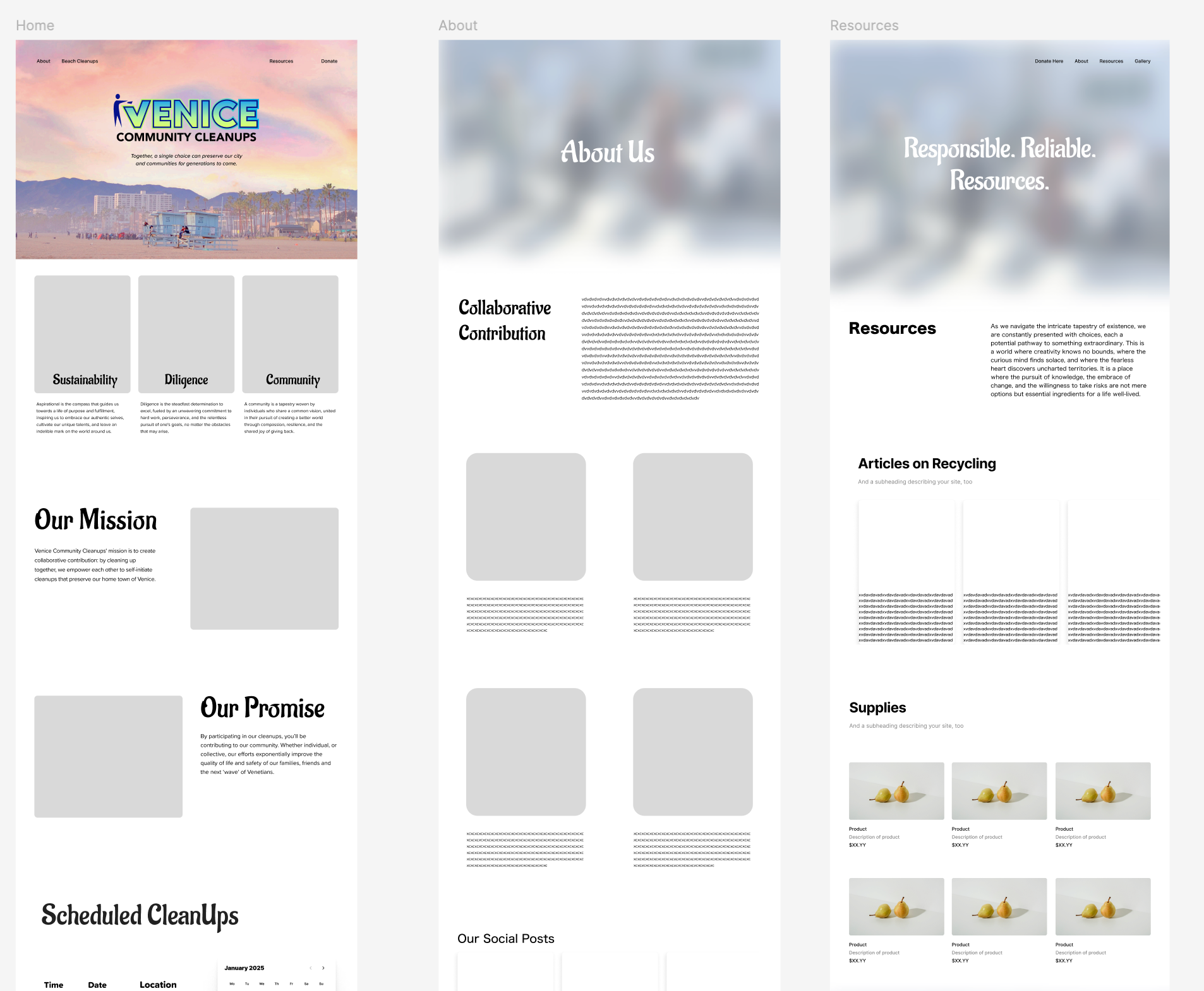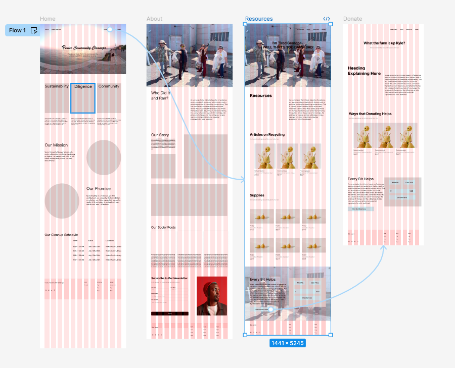 Serving as Lead Brand Strategist & Senior Web Designer, I worked with founders Chris & Bea Lopez in developing Venice Community Cleanups branding and visual identity system. Through many in-person meetings, community cleanups, and feedback loops about how VCC is verbally understood, we were able to successfully develop VCC's visual identity system, brand mission, vision, and other important components to this nonprofit. After working on the brand strategy and a healthy foundation for the nonprofit, I started working on re-designing their website. I developed the website originally in Wordpress, but then took my ideas and fleshed them out in Figma. I created S.W.O.T. analyses to help me understand other nonprofits that are popular within L.A. County and San Diego County.